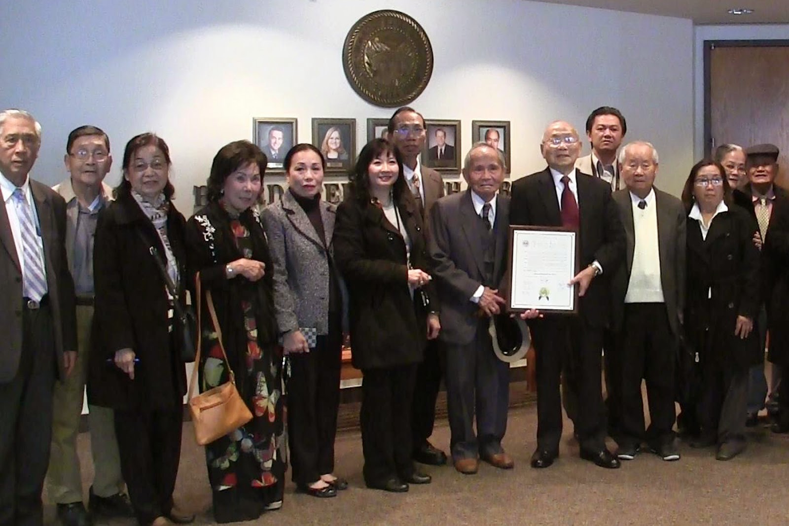 | Thiếu Tướng Nguyễn Khắc Bình đón nhận Nghị Quyết Công Nhận "Tháng Tư Đen" chụp hình với đại diện các tổ chức Cộng Đồng Mỹ gốc Việt tỵ nạn csVN tại Băc California. |