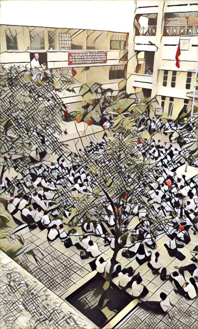 cái chuông lớn. Sau đó 2000 học sinh và thanh thiếu niên đứng xếp hàng ngay thẳng.
