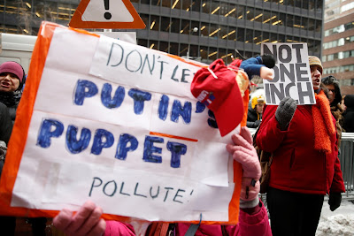 | Những người đấu tranh vì môi trường biểu tình phản đối ông Donald Trump tại New York ngày 09/01/2017. |
