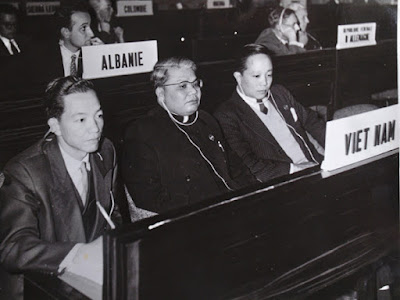 Hình 5: Giáo sư Phạm Biểu Tâm Khoa Trưởng Y Khoa Sài Gòn (trái) và Linh Mục Cao Văn Luận Viện Trưởng sáng lập của Viện Đại Học Huế từ 1957, đi dự một Hội nghị Quốc tế về Giáo Dục. [nguồn: hình tư liệu gia đình Gs Phạm Biểu Tâm]