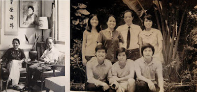 Hình 2a,b: Thầy Cô Phạm Biểu Tâm tại căn nhà đường Ngô Thời Nhiệm (1970); và 5 người con với tên gọi ở nhà: Bông, Gạc, Băng, Kim, Chỉ. [nguồn: hình tư liệu gia đình Gs Phạm Biểu Tâm]