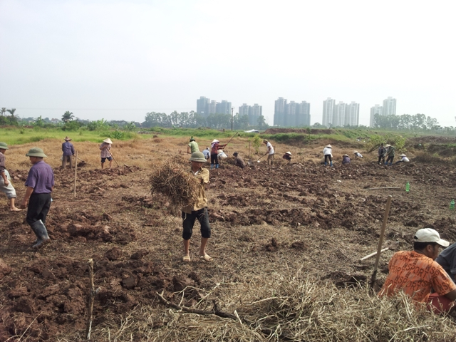 Sáng nay, 24.5.2013, bà con Văn Giang xuống đồng làm luống để chuẩn bị cho giẽ mạ vụ mùa 2013 trên những thửa đất bị cưỡng chế 24.4.2012.