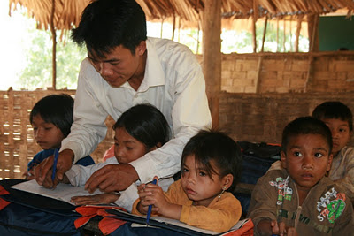 trò mới đứng lên trước lớp ba. Trường làng nhỏ nên không có phòng riêng