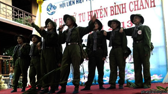 Theo phóng sự ảnh này thì đây là ‘lần đầu tiên’ Hội Liên hiệp Phụ nữ huyện Bình Chánh tổ chức trình diễn văn nghệ nhân dịp kết thúc ba tháng mùa hạ.