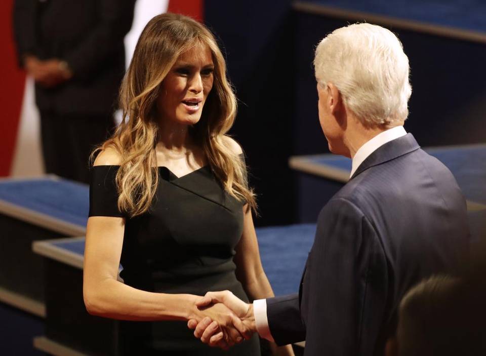 | Cựu TT Bill Clinton bắt tay Melania Trump là vợ Donald Trump trước khi vào nghe tranh luận |