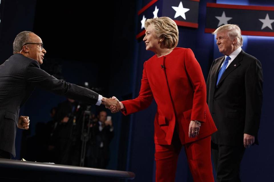 Dưới Đây là Những Bức Ảnh Lịch Sử của lần Tranh Luận đầu tiên giữa hai ứng cử viên Tổng thống Hoa Kỳ năm 2016 rất đặc biệt gồm Hillary Clinton là một Phụ nữ đầu tiên được một đảng lớn Hoa Kỳ là đảng Dân Chủ chỉ định, đấi đầu với Donald Trump là một nhà kinh doanh địa ốc chẳng qua bất cứ kinh nghiệm gì về chính trị nhưng lại thắng đề cử của đảng Cộng Hòa :