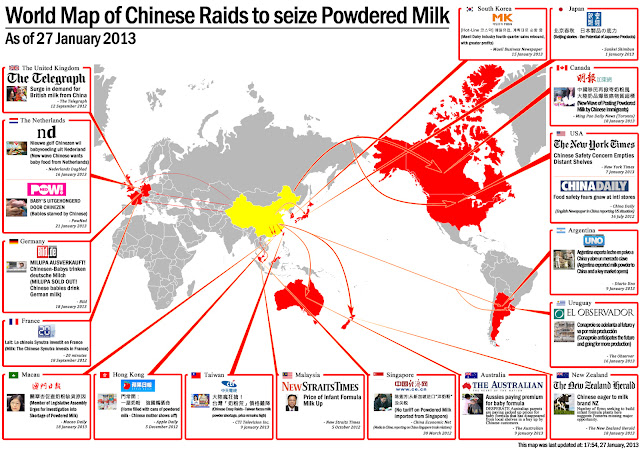 Báo chí trên các Blog mấy tuần nay ở Trung quốc đã truyền tay nhau đăng tải tình trạng báo động đỏ đó là khách du lịch vào Trung quốc giảm 30% so với giữa năm 2012. Nguyên nhân chính là do 3 yếu tố không thể hóa giải nổi đó là:1, Nguồn nước tại Trung quốc cho người ăn và uống nhiễm độc ghê gớm đặc biệt là nhiễm chì, a-xít và các hóa chất độc hại suốt hơn mấy chục năm qua, hậu quả của sự phát triển nóng thị trường làm ăn kinh tế do các nhà máy, các xí nghiệp thải ra đã ngấm nặng trong lòng đất và trên các sông hồ, các nguồn nước trên phạm vi cả nước. Người ta tính rằng nay chỉ còn có Tây tạng đã đỡ chút ít mà thôi, nhưng với tình trạng này cứ kéo dài thì cũng không thể là nơi con người có thể sống được.Trung quốc trên bờ vực thảm họa sinh tháiSau khi báo chí đăng tải về lợn chết đổ vứt ra sông, rồi vịt và sau cùng là hình ảnh hàng loạt cá chết đặc trên các hồ thì những lời cảnh cáo này trên các Blog càng lan nhanh hơn bao giờ hết. Chính quyền Trung quốc đang lúng túng không biết sẽ làm gì để trấn an dân, hầu như là bất lực.2, Lý do thứ hai là ô nhiễm khí thở của con người từ hai phía: Đó là từ khí thải ở các nhà máy, các công trường xí nghiệp thải ra. Người ta đo lượng Các-bon-nic và các chất độc trong không khí đã đến mức báo động đỏ, nồng độ đậm đặc khiến cho những người khỏe biến thành người bệnh, nhiều người bị bệnh như hen xuyễn hay phổi nhất là trẻ em và người có tuổi bị tử vong nhiều trong mấy năm qua và nhất là những năm gần đây. Nhưng thảm họa đến nữa là do các trận bão cát do sự sa mạc hóa đang tràn đến các thành phố.3, Tình trạng này cùng với vấn đề chính trị, xã hội thiếu minh bạch, công bằng đã khiến đa số người dân Trung quốc sống cảm thấy bất an, càng ngày càng nhiều người giầu có mức tiền triệu đô-la trở lên đã đăng ký ồ ạt bỏ nước ra đi định cư tại các nước như Mỹ, Canada, Anh, Úc và nay khi có dấu hiệu các quốc gia này thấy không thể nhận thêm người vào nữa thì họ và nhiều người lưng vốn ít hơn đã đổ vào các nước Nam Mỹ, Capuchia, Lào và có xu hướng cả Việt nam nhưng trên danh nghĩa các nhà đầu tư làm ăn. Họ mang theo cả gia đình, anh em họ hàng thậm chí cả dòng họ.Như báo chí Trung quốc đã phải nói đây thực sự là cuộc chạy tỵ nạn khỏi Trung quốc chứ không phải là đi định cư như vẫn xảy ra lâu nay.Người ta thấy phổ biến cảnh ngày ngày tại các đại sứ quán các nước tại Trung quốc, số người xếp hàng ghi tên làm thủ tục ngày càng đông, có người đã thuê phòng trọ gần đó để chờ cho bằng được đến lượt mình. Trung quốc không chỉ lo số ngoại tệ sẽ biến khỏi đất nước này mà lo đây sẽ là hiệu ứng tai hại là sẽ đến ngày khách nước ngoài không dám vào Trung quốc. Như báo chí đăng tải khuyên người đi du lịch rằng bạn không thể đến du lịch Trung quốc nếu cứ đeo mặt nạ cả ngày và đeo bên mình hàng can nước lọc mang theo đi khắp nơi trên đất nước này.4, Không còn ai ở Trung quốc dám ăn các loại hoa quả và sữa, thịt từ chính Trung quốc làm ra vì các thứ đó độc hại và nguy hiểm cho con người. Như báo chí châu Âu và Mỹ , Úc v.v… mấy tuần qua liên tục đăng bài cảnh báo việc người Trung quốc ra sức gom sữa trên khắp các cửa hàng ở châu Âu và các quốc gia phương Tây để đưa về Trung quốc và nay cả quả tươi vì những người có chút tiền ở Trung quốc không dám ăn quả tươi, thịt lợn, gà, vịt và uống sữa, sản phảm làm ra tại chính quốc gia mình. Người ta cho rằng những sản phẩm sữa Trung Quốc vẫn chưa khôi phục được niềm tin người tiêu dùng sau vụ tai tiếng năm 2008 nay chẳng những chưa ngưng mà có khả năng kém phẩm chất và độc hại cao hơn vì không tin vào sự minh bạch của các thông tin nhà nước đưa ra.“Các siêu thị hay những nơi bán lẻ mặt hàng sữa trẻ em đang hạn chế bán,” ông Richard Dodd cho biết. Họ phải làm điều này vì xuất hiện một số khách hàng mua với số lượng lớn bất thường. Xu hướng không bình thường này được cho là kết quả của việc xuất khẩu sữa không chính thức sang Trung Quốc.Những tuần qua, các siêu thị tại Anh quốc đã phải dán thông cáo yêu cầu khách hàng không mua nhiều hơn hai hộp sữa một lúc để đảm bảo nguồn cung cấp cho những người khác. Nhiều người tiêu dùng tại Anh cho biết họ để ý thấy có tình trạng khan hiếm sữa tại các siêu thị và phải đi nhiều nơi mới mua được nhãn hiệu mình thường dùng.“Vào Chủ Nhật, chúng tôi đã không thể tìm được sản phẩm nào từ Asda hay Tesco, chúng tôi đã phải tới Sainsbury’s,” bà Lyn Patterson nói với Reuters.Hãng thực phẩm của Pháp Danone, công ty sản xuất sản phẩm sữa Aptamil nói hiện đang phải tăng cường sản xuất để đáp ứng nhu cầu tăng bất thường này.“Chúng tôi hiểu nhu cầu tăng cao bắt nguồn từ những 
