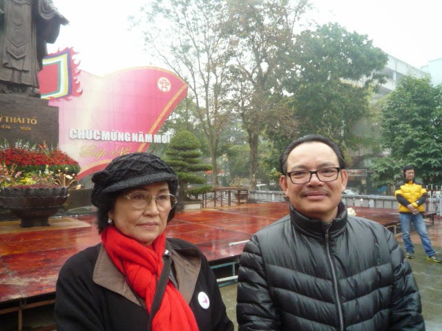 Nguyễn Xuân Diện và GS Phạm Duy Hiển trên sân tượng đài Lý Thái Tổ