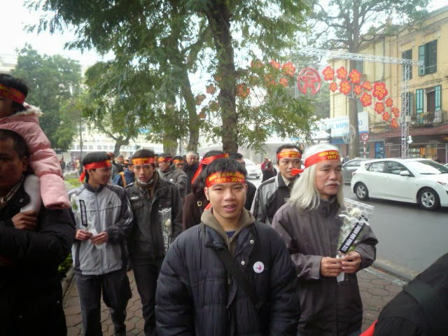 Đoàn người đi trong lặng lẽ quanh Bờ Hồ, tưởng niệm những người đã bỏ mình vì nước tháng 2 năm 1979.