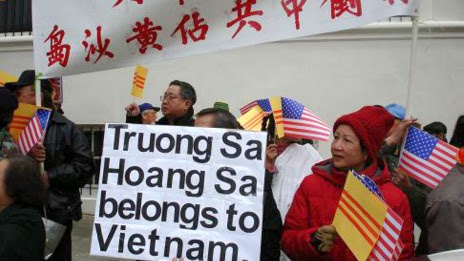 | Biểu tình trước Tổng Lãnh sự quán Trung Quốc ở San Francisco để phản đối chính sách bành trướng của Bắc Kinh (ảnh Bùi Văn Phú) |