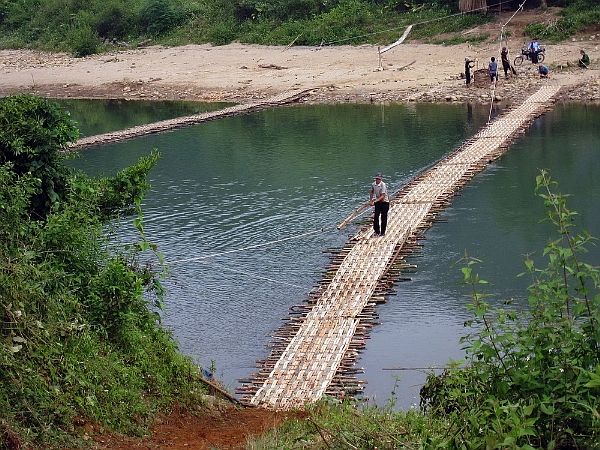 < Một chiếc cầu treo tại xã Nậm Cha (Sìn Hồ, Lai Châu) ván đã tơi tả một đoạn. Mỗi lần người đi qua phải rón rén kẻo các thanh tre tiếp theo lại lật bung ra.