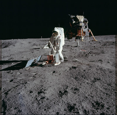 | Phi hành gia Mỹ Edwin E. Aldrin Jr. đi bộ trên Mặt Trăng ngày 20/07/1969. |