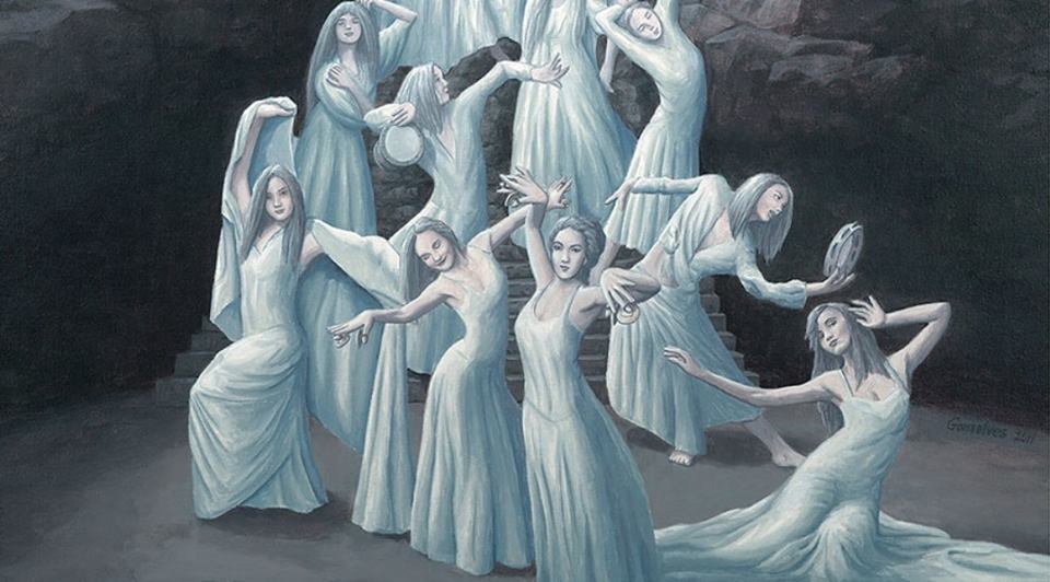 Tranh 2: Cũng vẫn cùng chủ đề về các thiếu nữ trong trang phục toàn trắng.
