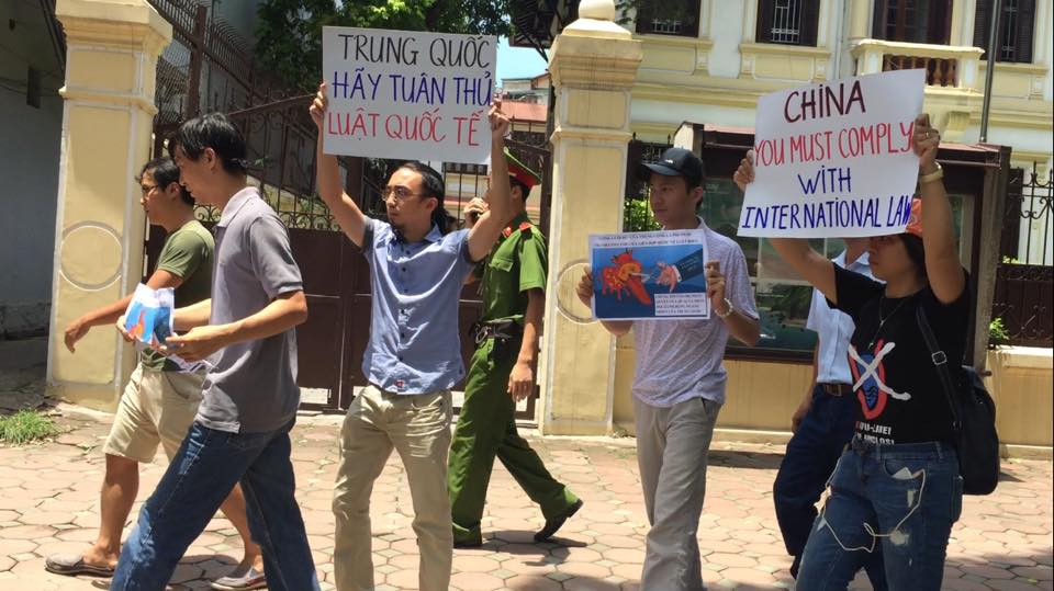 Những phút biểu tình ngắn ngủi bên Hồ Kiếm, sáng nay, 17.07.2016: