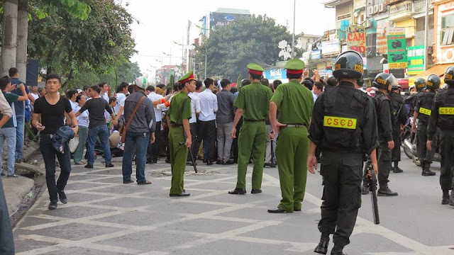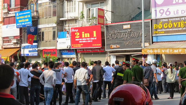 Nhưng hình ảnh cuối cùng chụp được trước khi rời hiện trường. Công an, băng đỏ, cảnh sát cơ động dàn hàng ngang, chắn toàn bộ đường Lê Duẩn. Bà con ngồi xuống đường. Xe buýt và các phương tiện giao thông kẹt cứng đằng sau. Suốt quãng đường từ ngã tư Khâm Thiên, Nguyễn Thượng Hiền và cổng chính công viên đổ lại không được ai bén mảng.