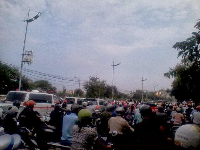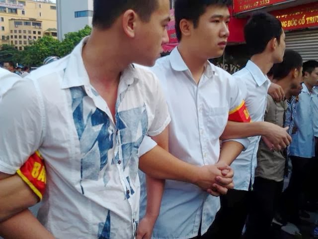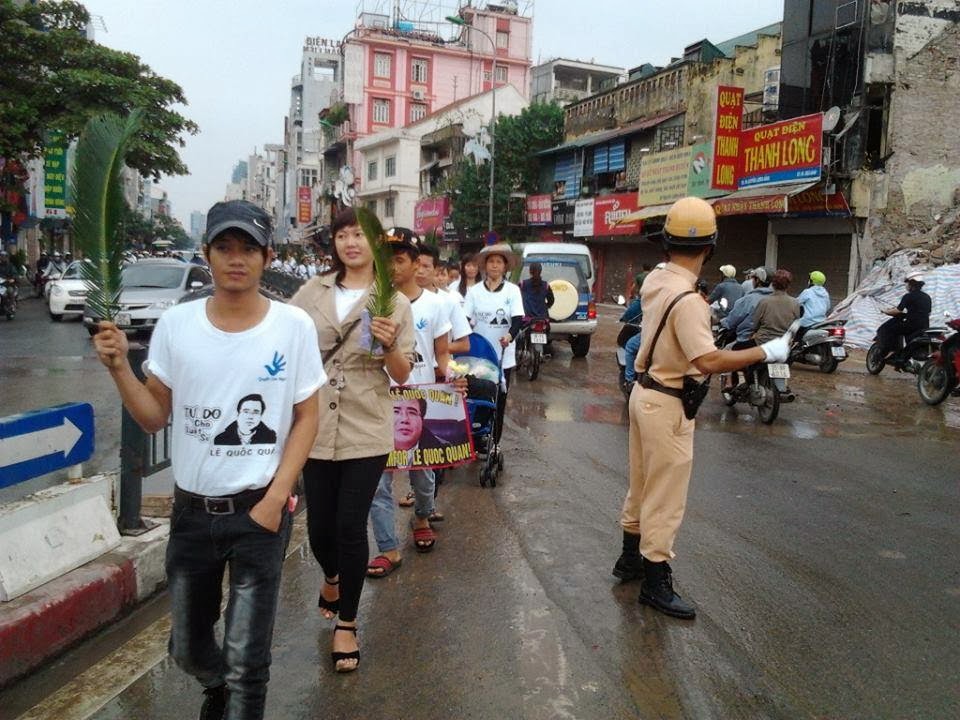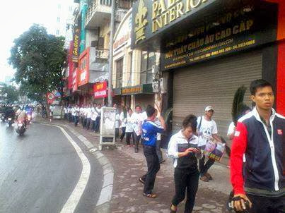 09h05 đến 09h30: Công an cản chặn. Bà con rời vị trí KS Niko để quay về hướng ĐH Bách Khoa. Lại chặn tiếp. Bà con tập trung trước cửa Công viên Thống nhất hát vang Kinh Hòa Bình.