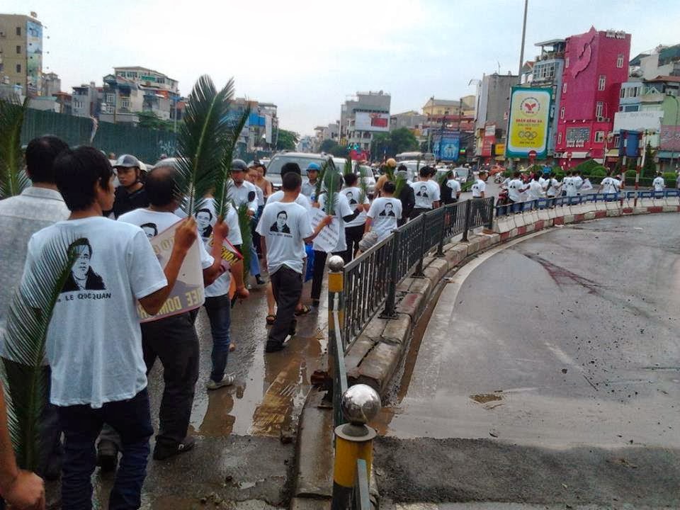 06h53: Đoàn người đi dự phiên tòa đã bắt đầu xuất phát từ Nhà thờ Thái Hà.