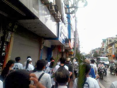 09h15: Có một người bên kia đường ném đá vào đoàn giáo dân.