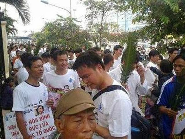06:30, Thánh lễ tại Thái Hà đã xong, mọi người ra tượng Đức Mẹ bên cạnh nhà thờ cầu nguyện tiếp tục cho luật sư Lê Quốc Quân.