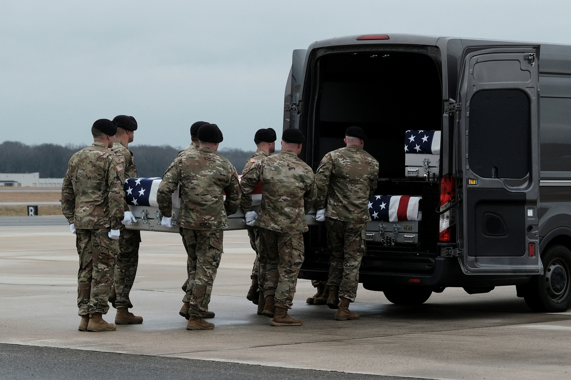 Thi thể các lính Mỹ thiệt mạng trong vụ tập kích mới đây được đưa về Mỹ - Ảnh: REUTERS