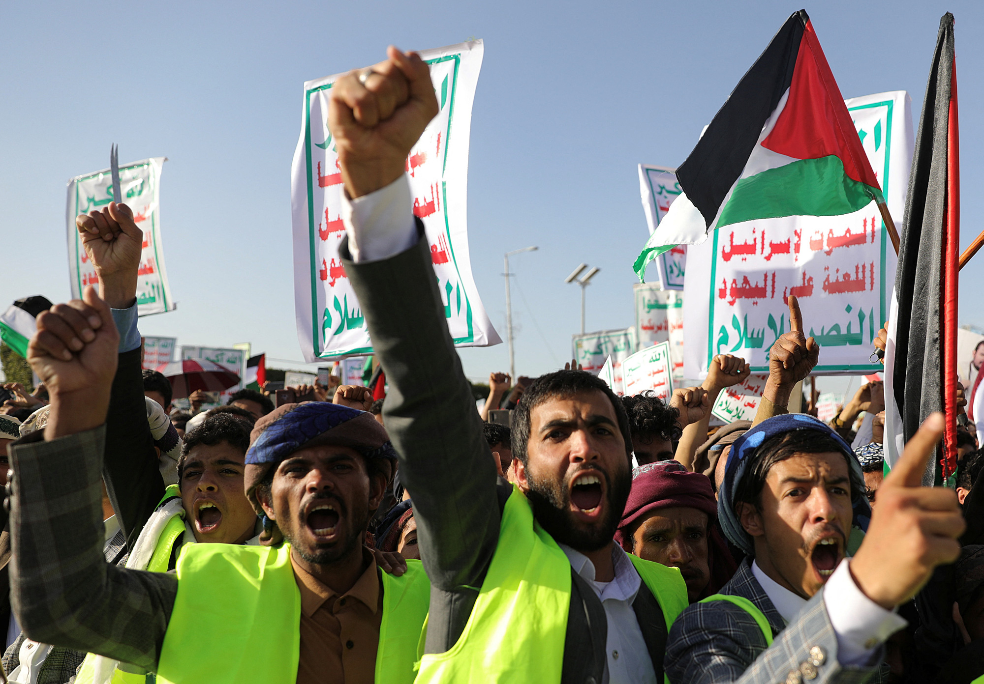 Những người ủng hộ Houthi xuống đường ở Yemen sau cuộc tấn công của Mỹ, Anh - Ảnh: REUTERS