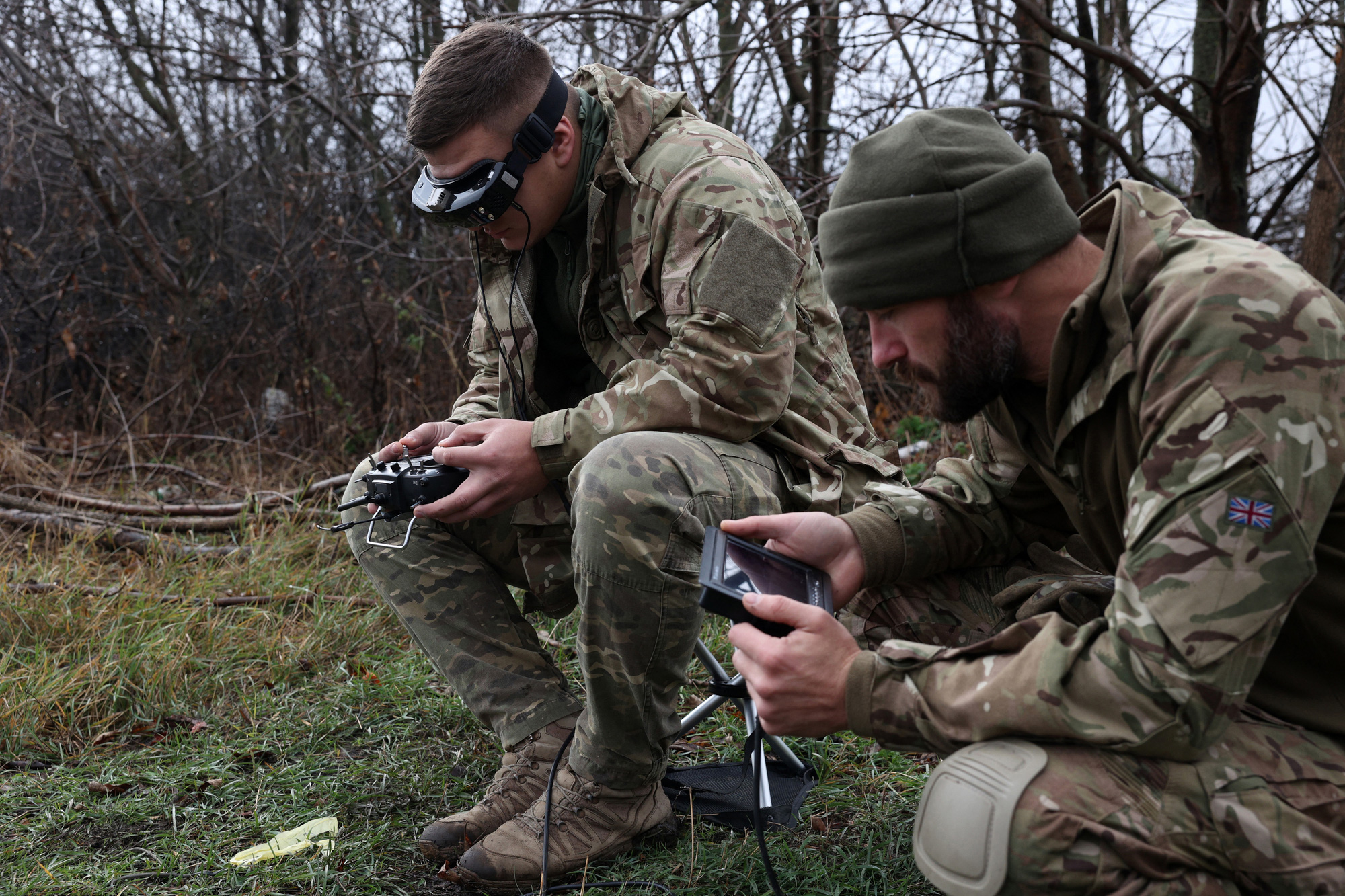 Binh sĩ Ukraine thực hành huấn luyện điều khiển drone FPV hồi giữa tháng 11-2023 - Ảnh: AFP