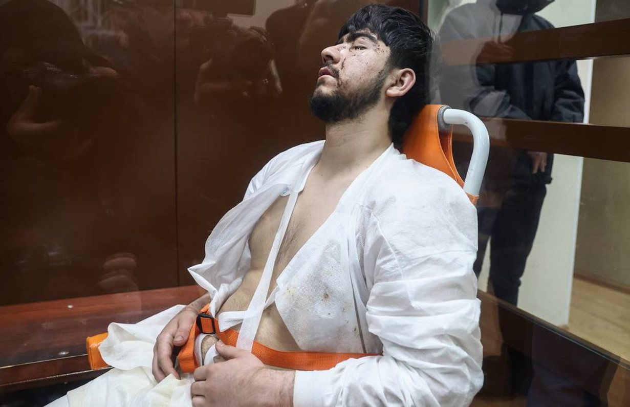 Nghi phạm thứ 4 vụ xả súng khủng bố nhà hát ở Maxtcơva đến tòa bằng cáng - Nguồn: The Telegragh - AFP