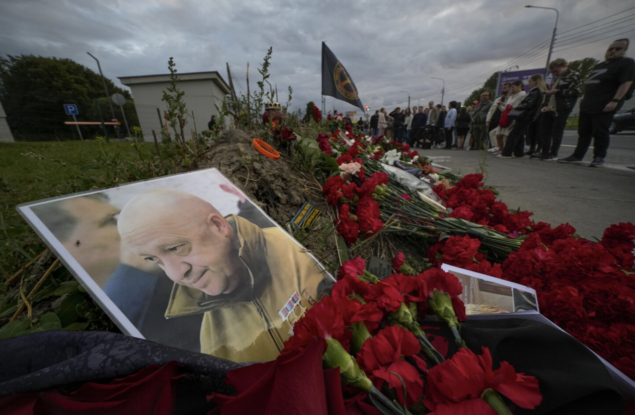 Hoa tưởng niệm Yevgeny Prigozhin, ông chủ công ty lính đánh thuê Wagner - Ảnh: AP