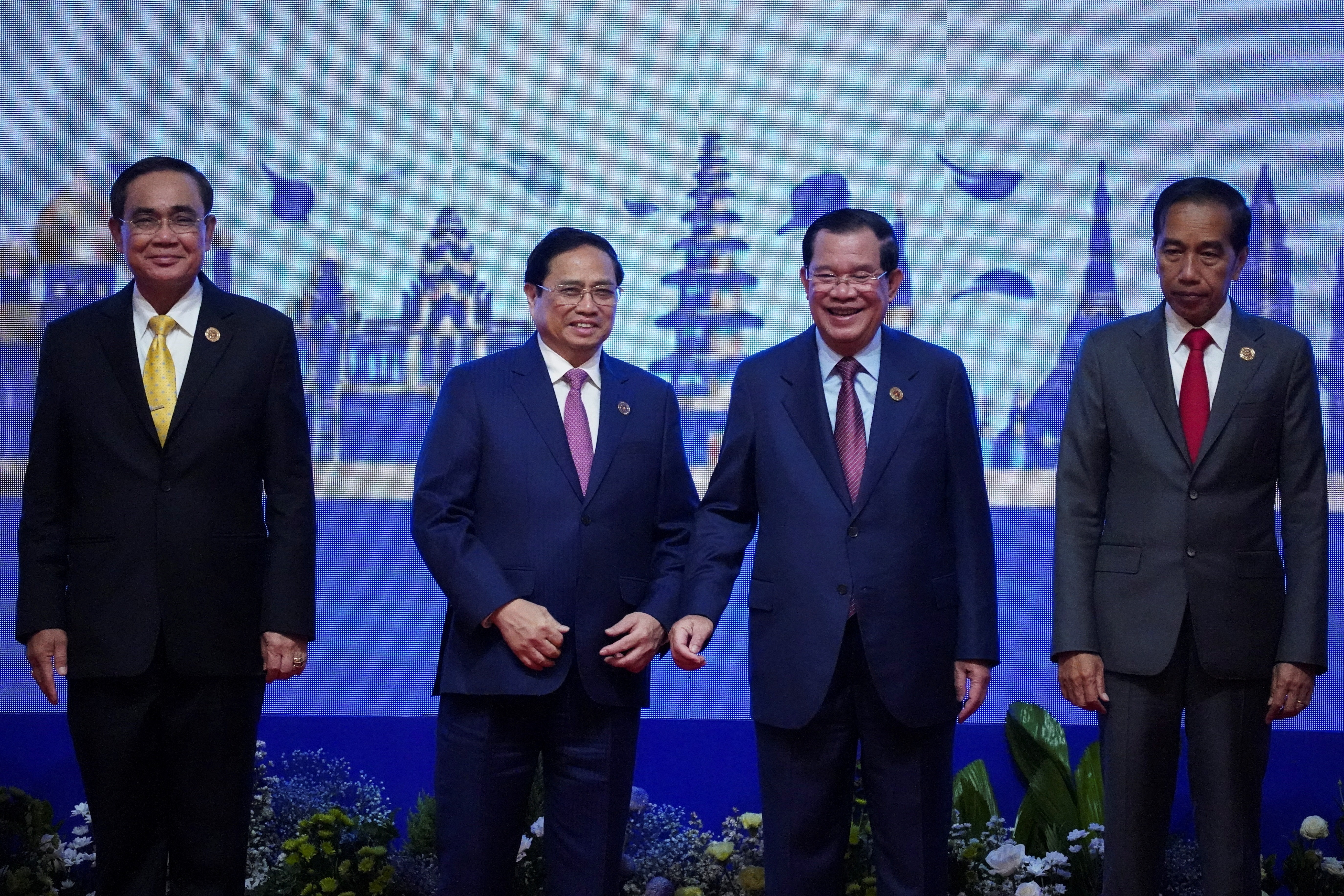 Thủ tướng Phạm Minh Chính (thứ hai từ trái qua) tại Hội nghị Cấp cao ASEAN tại Campuchia ngày 11-11 - Ảnh: REUTERS