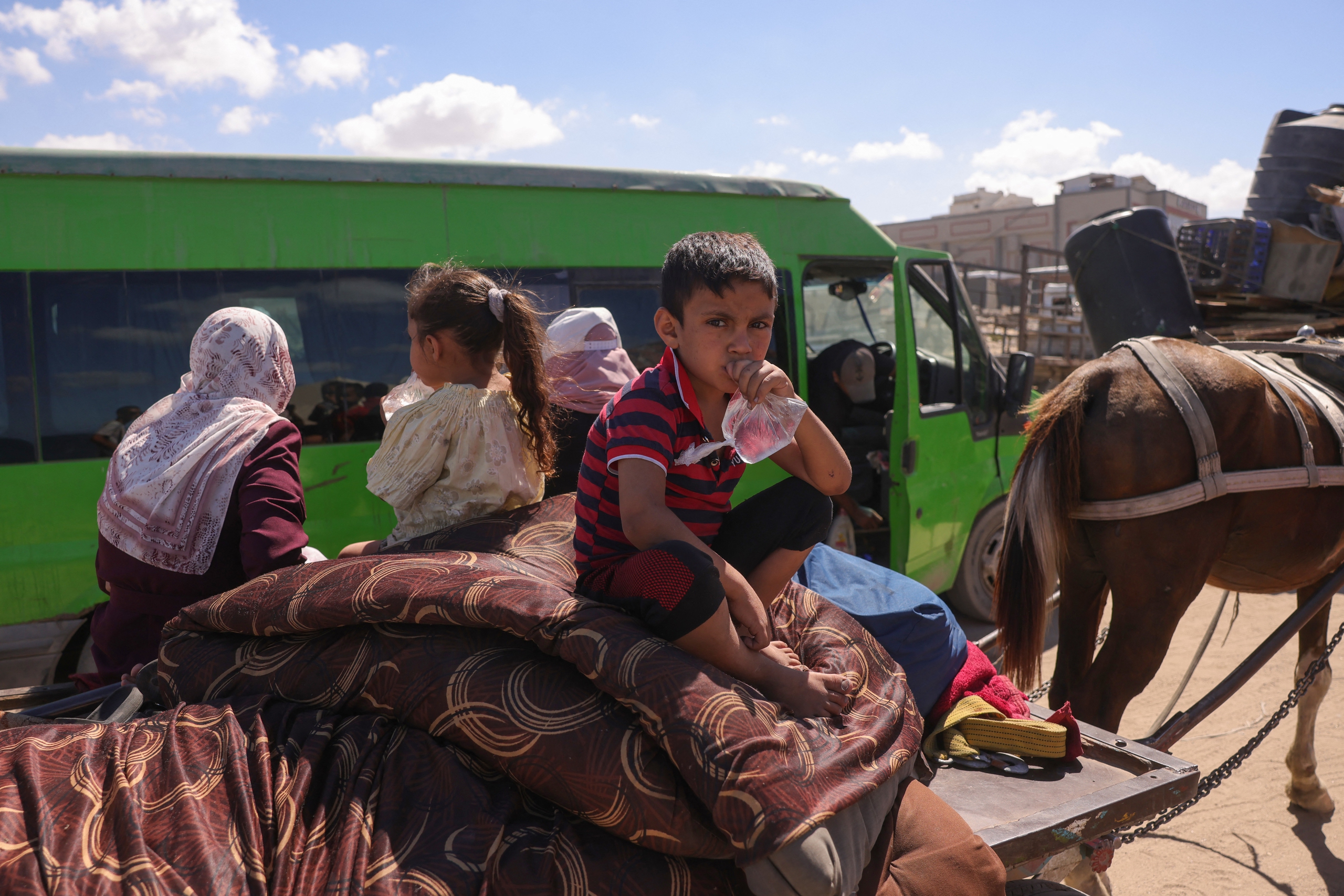 Các gia đình Palestine trên đường di dời về phía nam sau hàng loạt yêu cầu của Israel ngày 1-10 - Ảnh: AFP