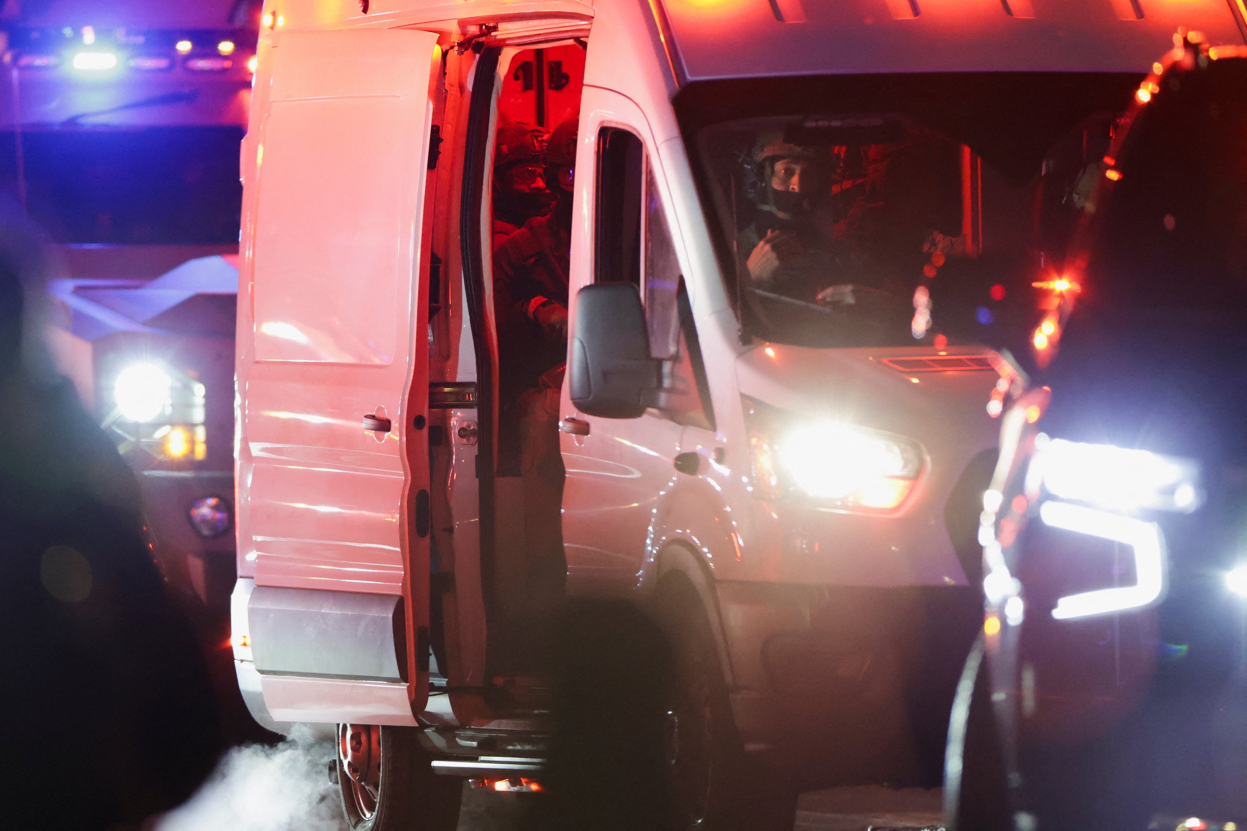 Xe hộ tống ông Maduro trên đường đến nhà tù ở New York - Ảnh: REUTERS