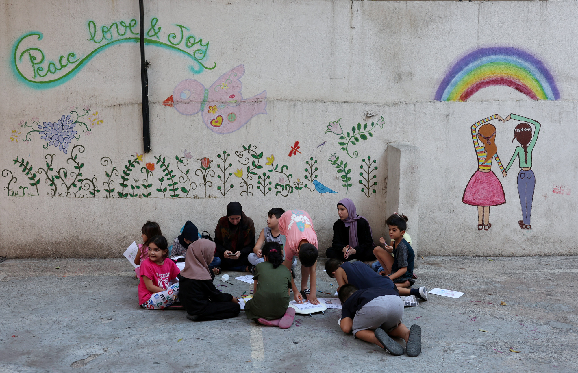 em tại một trường học được chuyển thành nơi trú ẩn ở Beirut (Lebanon),