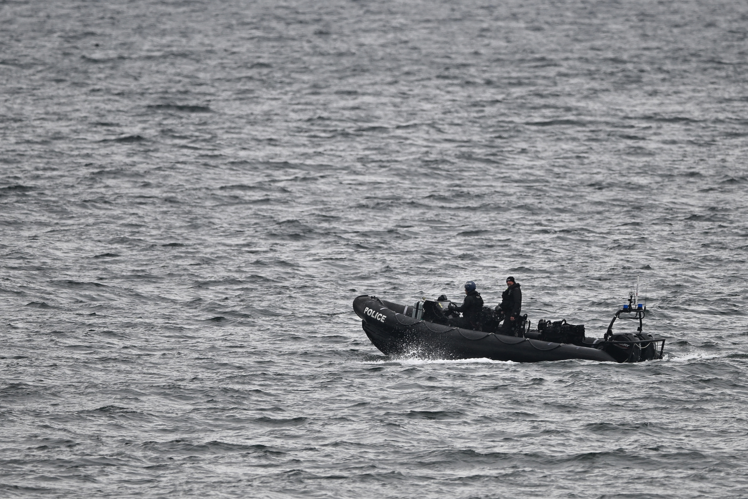 Lực lượng tuần tra ngoài khơi sân golf ở Turnberry trước khi Tổng thống Mỹ Donald Trump chơi golf ngày 26-7 - Ảnh: AFP