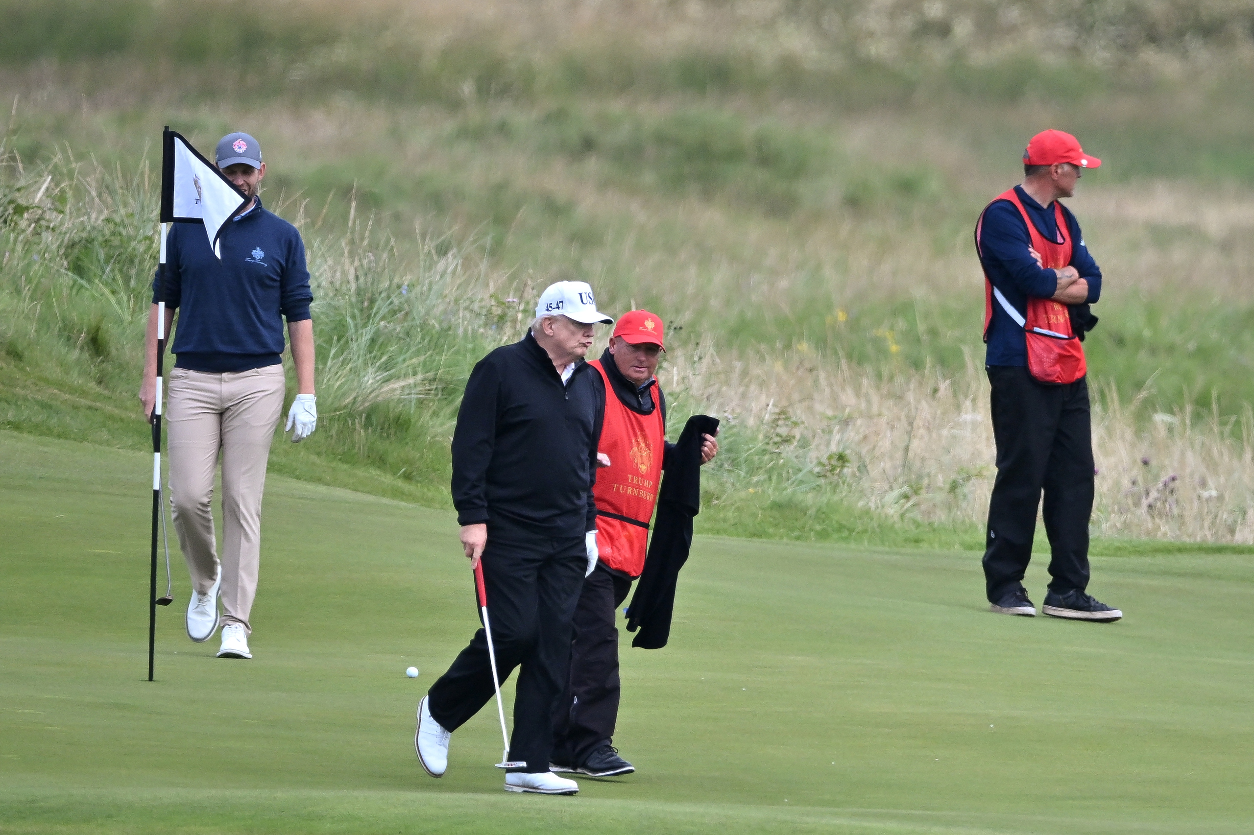 Trong khi đó các tay súng bắn tỉa của Mật vụ Mỹ được bố trí tại nhiều vị trí. Một số người chơi golf khác trên sân cũng bị kiểm tra an ninh.