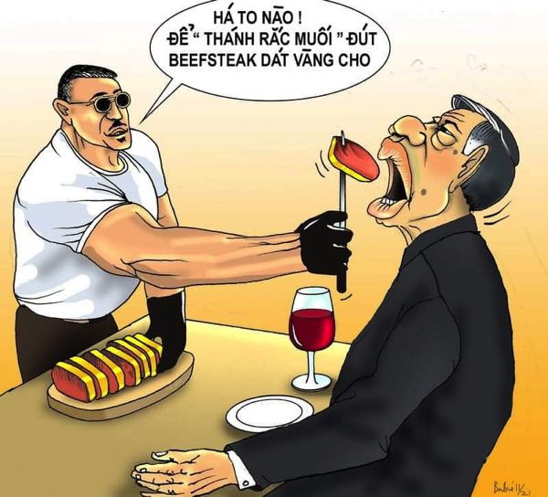 ***************** Ảnh hoạt hình hài về Tô Lâm được Thánh Rắc Muối đút thịt bò bọc vàng