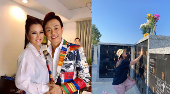 Bà xã gây xúc động khi hát 'Happy Birthday' mừng sinh nhật Chí Tài bên phần mộ của cố nghệ sĩ
