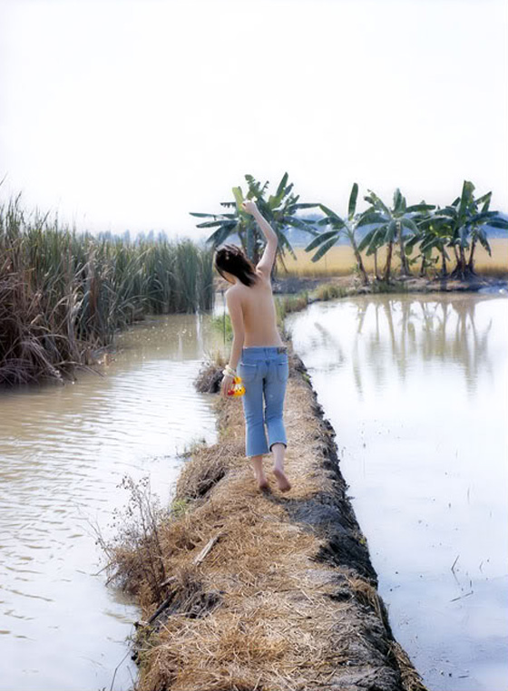 Ảnh gái đẹp khỏa thân giữa cánh đồng ở vùng quê hương sông nước miệt vườn
