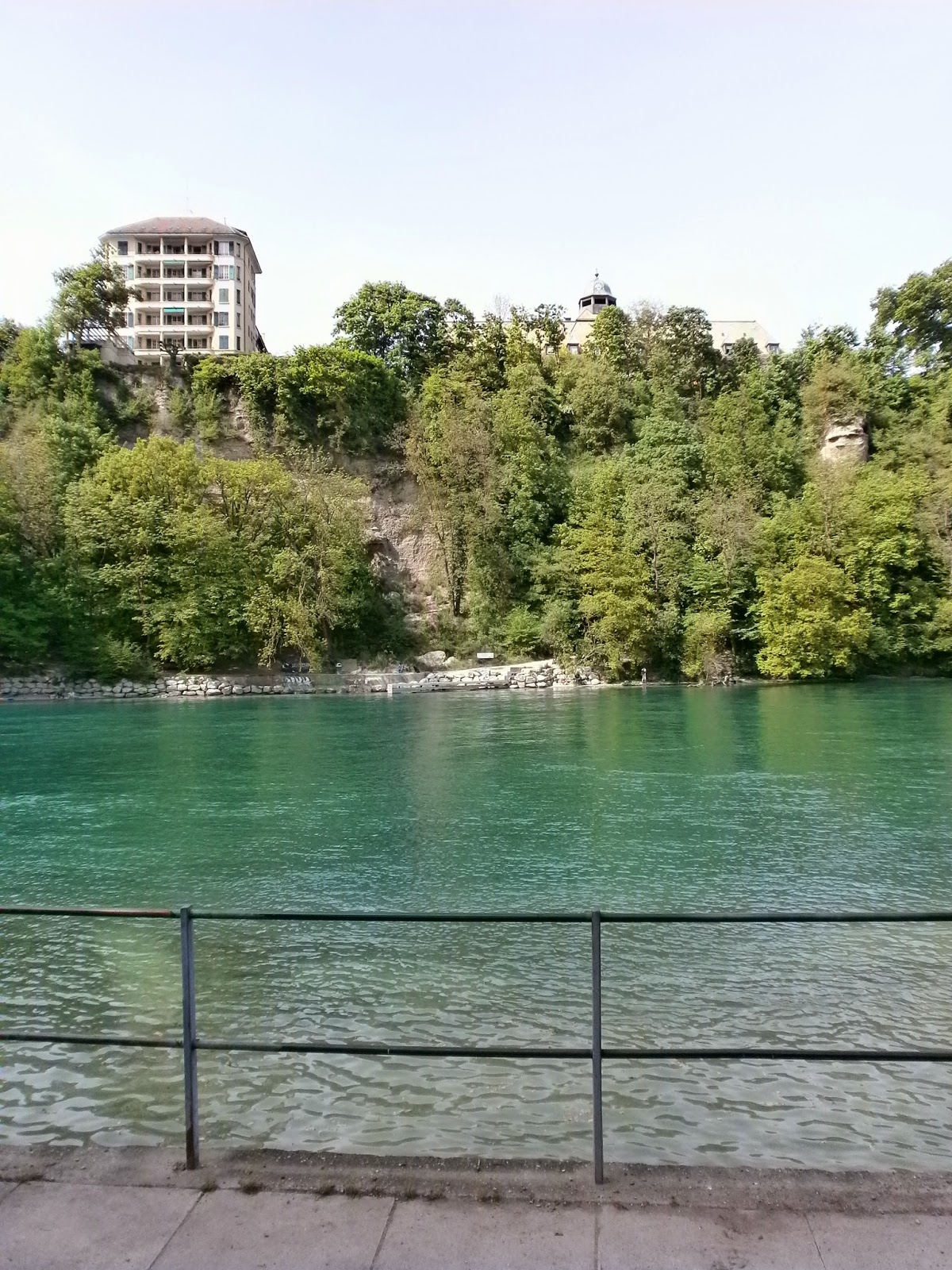 Nhìn về phía Tây, hướng núi Jura. Nước sông đục ngầu.