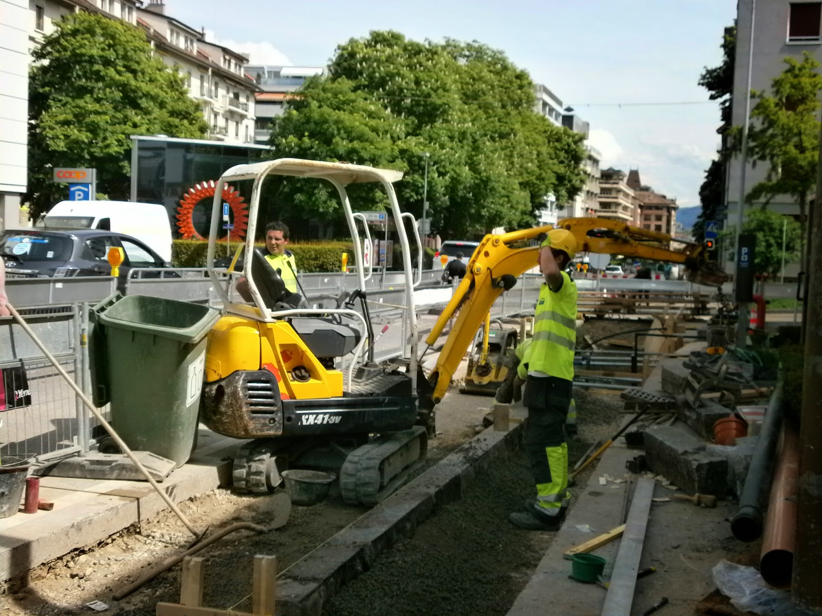 công nhân Thụy Sĩ làm đường. Dân Tây làm gì cũng dùng máy. Lắp mấy thanh