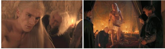 Hoàng tử Aemond bị anh trai - Vua Aegon II - bắt gặp trong hoàn cảnh không mảnh vải che thân ở nhà thổ ở King's Landing.