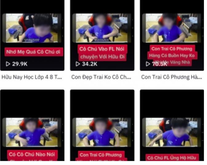 Thậm chí các tài khoản này còn đặt tiêu đề gây sốc như “Trời mưa không có mẹ bên cạnh cô chú ơi”, “Nhớ mẹ quá cô chú ơi”, “Con trai cô Phương Hằng nói gì khi không có mẹ”… với mục đích kích thích sự tò mò của khán giả.