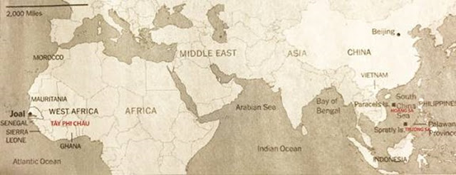 cả hơn nửa vòng bên kia trái đất, tới vùng biển Tây Phi châu và cả xuống tới