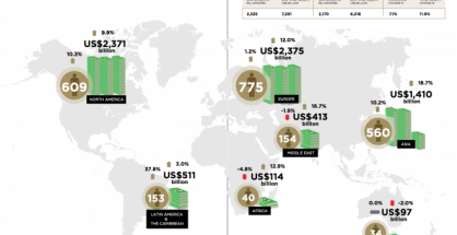 tiền 2375 tỷ đô la Mỹ, đã vượt qua Bắc Mỹ với 609 tỷ phú nắm số tiền