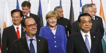Ảnh bên:Thủ tướng Việt Nam Nguyễn Tấn Dũng (hàng thứ hai, bên trái) trong ảnh chụp ngày 16/10/2014 với một số lãnh đạo tham gia Thượng đỉnh Á Âu tại Milano (Ý). Ở hàng trước, bên phải là Thủ tướng Trung Quốc Lý Khắc Cường. REUTERS/Alessandro Garofalo