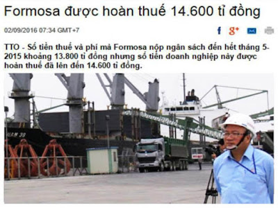 sau, Việt Nam hoàn thuế cho Formosa hơn 14,000 tỉ Việt Nam đồng. Số tiền
