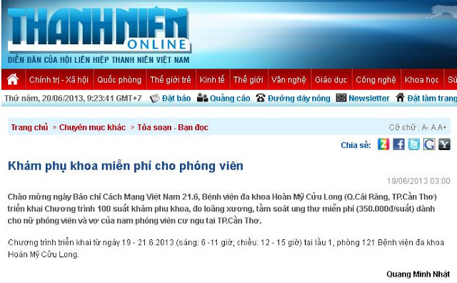 Thấy thiên hạ đua nhau chửi ngày báo chí cách mạng Việt Nam, có bệnh viện làm ngay quả Khám phụ khoa cho nữ phóng viên chả biết là nên vui hay nên buồn cười???