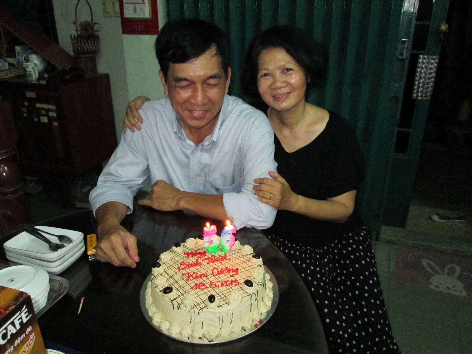 Đấy, ông xã tôi, vào ngày sinh nhật thứ 56 của ông ấy. Tôi và ông ấy đã sống chung với nhau được 28 năm rồi, con trai lớn bây giờ đã 26, chỉ nhỏ hơn ông ấy lúc mới gặp tôi có 2 tuổi thôi. Gần 30 năm, buồn vui giận hờn yêu thương cãi cọ sóng gió hờn giận có đủ cả rồi. Nhưng hình chụp xong thì con gái bảo, bố mẹ già rồi mà nhìn vẫn còn ... tình quá nhỉ.