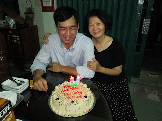 Năm nay, sinh nhật của ông xã tôi lại đúng vào ngày thứ bảy. Là một ngày cuối tuần, lẽ ra phải có một buổi outing cho cả gia đình, cùng nhau đi ra ngoài ăn uống gì đó một chút, rồi mới về nhà ăn bánh sinh nhật - một việc làm mang tính "nghi lễ" không thể thiếu. Nhưng khổ nỗi, hôm nay cả ông xã tôi lẫn tôi đều phải đi làm, và con trai con gái đều đi làm, đi học. Không những thế, buổi tối tôi lại bận cơm khách, vì tôi có một người bạn Mỹ quen nhau đã mấy chục năm, đang ở SG, mà tôi không thể không gặp. Nên ban ngày đã không gặp mặt nhau, mà đến tối có bữa cơm gia đình thì tôi với ông xã tôi cũng không cùng ăn được.