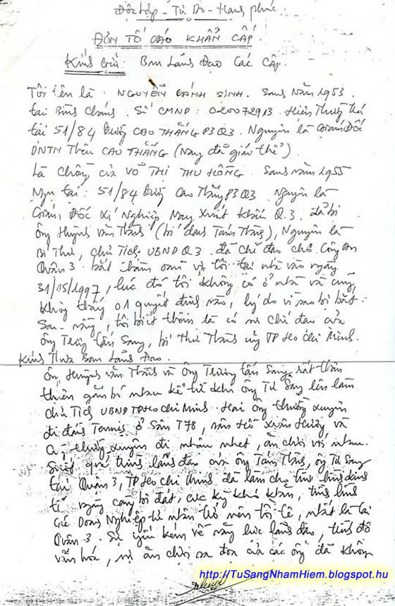 Trích đơn tố cáo bi thiết của ông Nguyễn Ánh Sinh |
